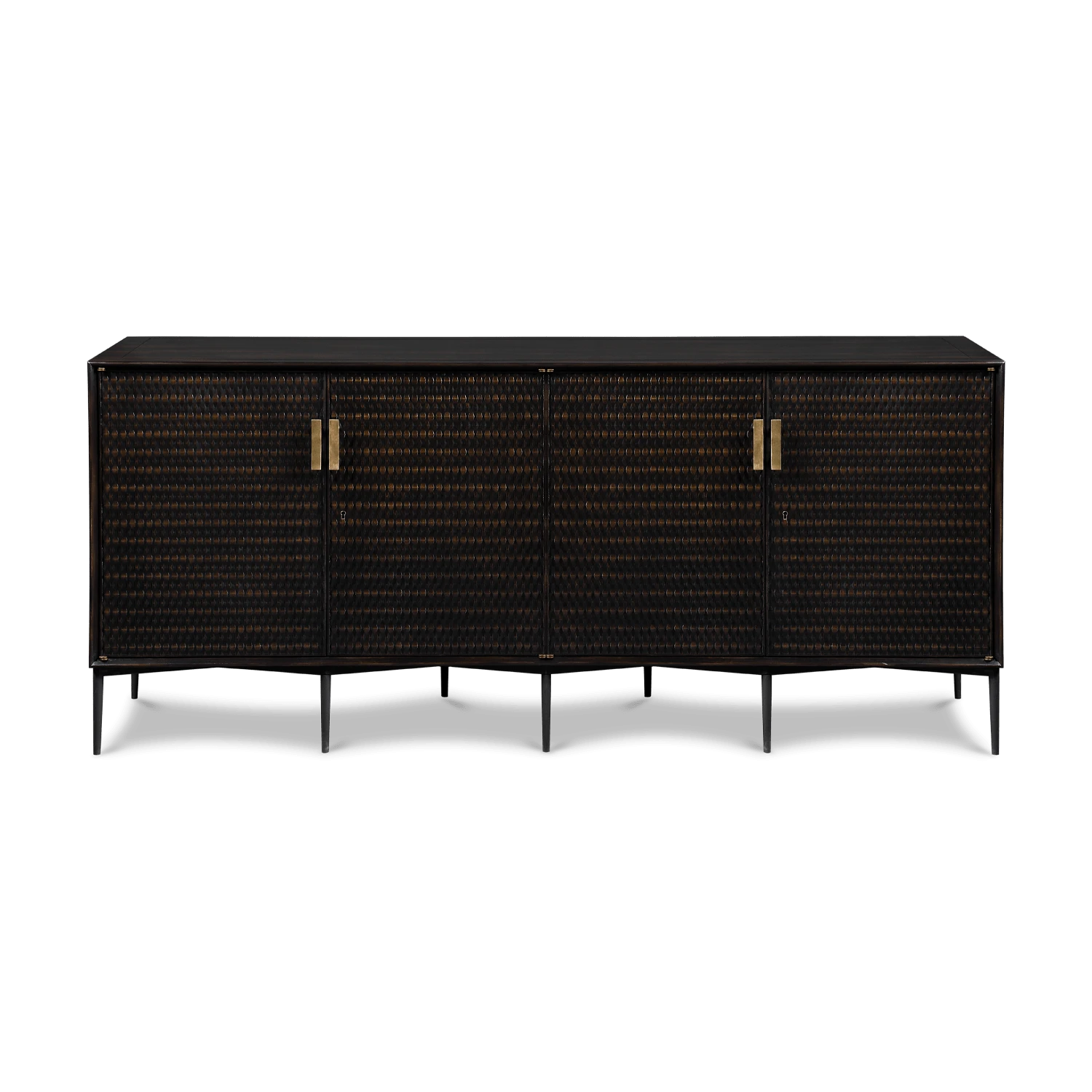 Primavera wood. Iron base, antiqued brass details.