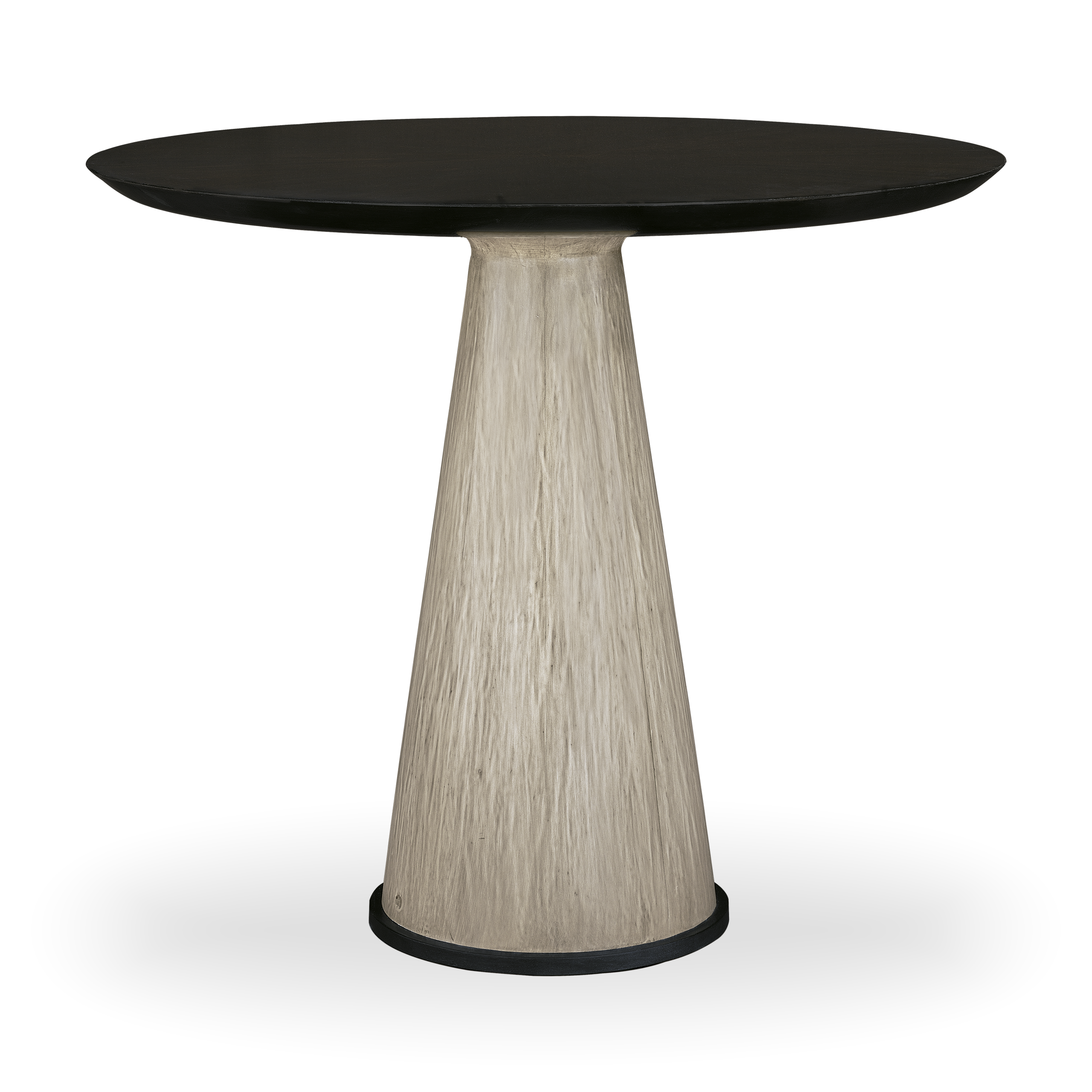 This circular occasional table with a conic base is perfect for any setting and comes in two different finishes.