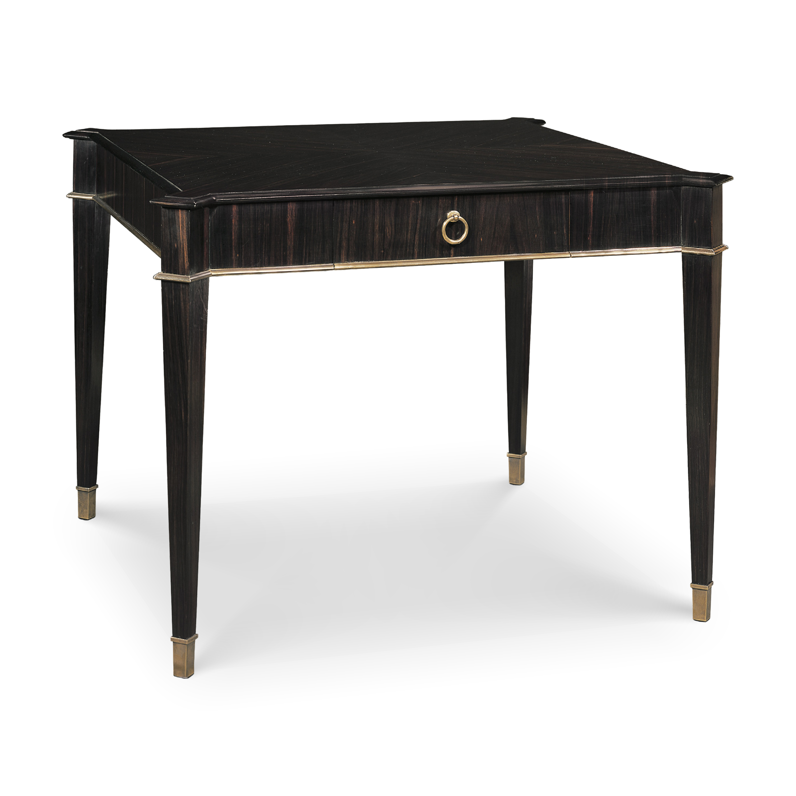 Primavera wood with ebony veneer and antiqued brass details.