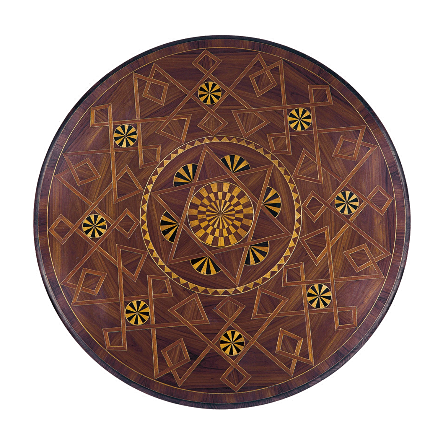 White cedar wood with ebony, maple, granadillo, mahogany and white cedar marquetry.