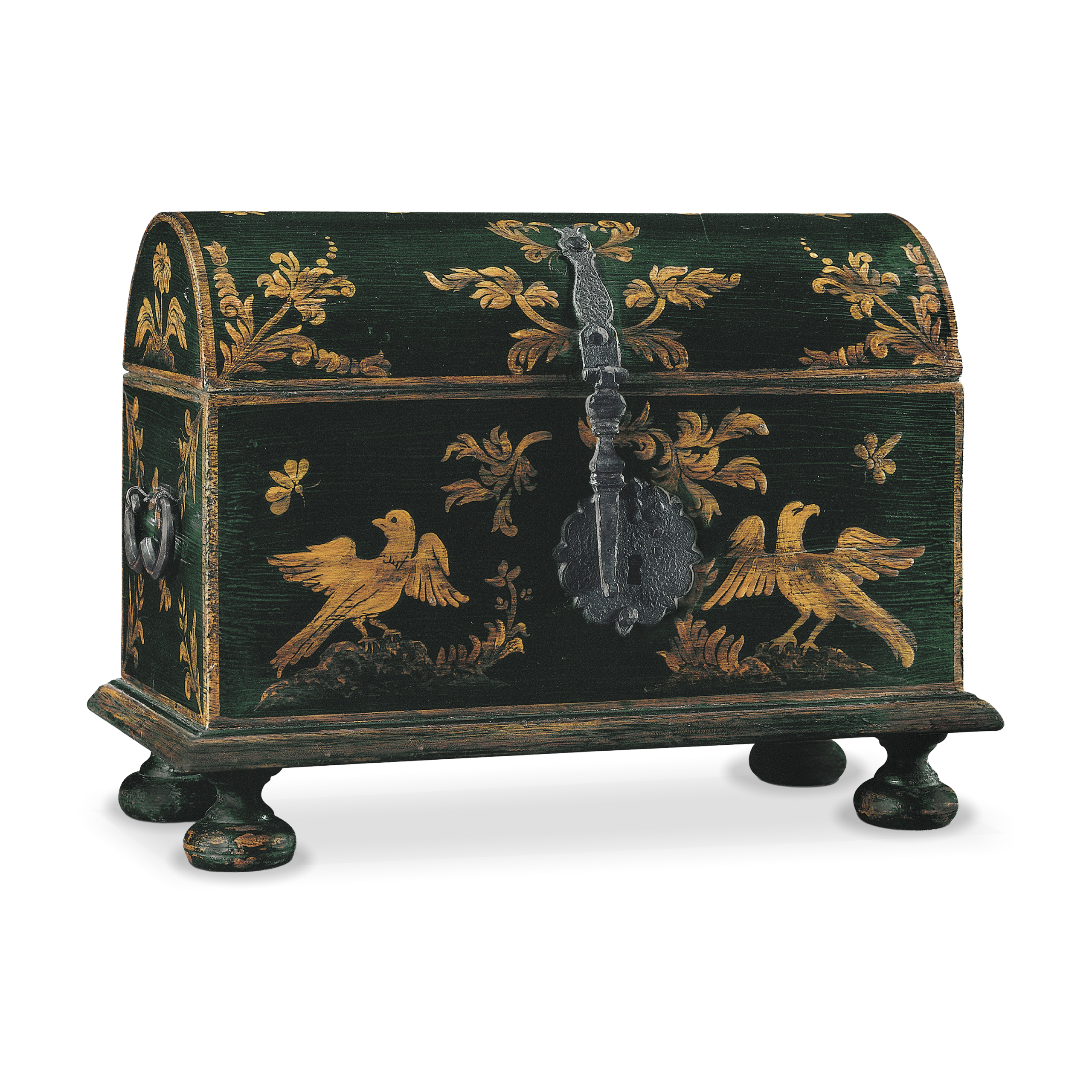 The Eagles small coffer has rounded edges and is decorated with beautiful hand painted and Novo Hispanic motifs, all in shades of green.