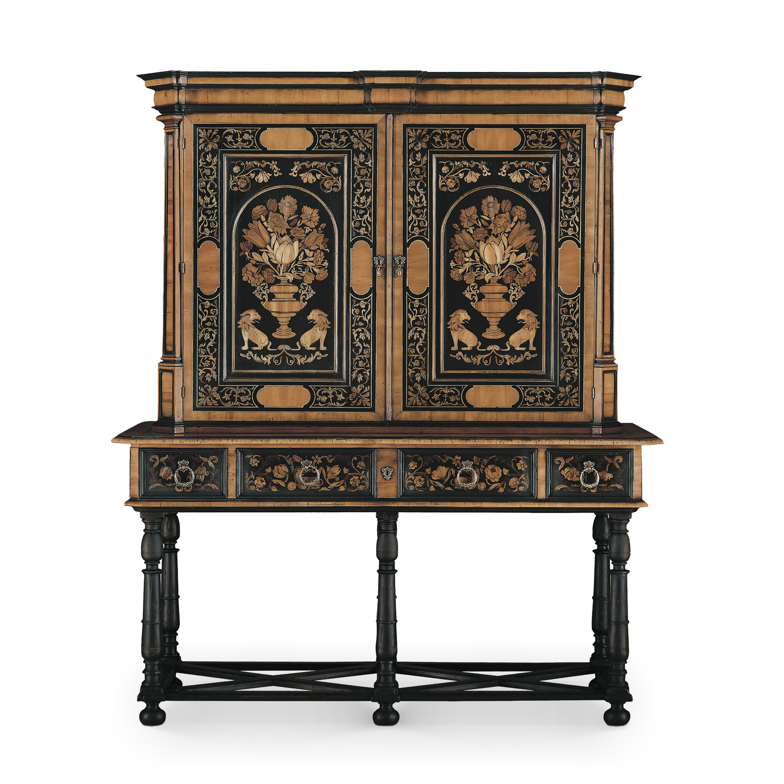 Made of primavera wood. Details in primavera, yew and ebony, antiqued brass hardware