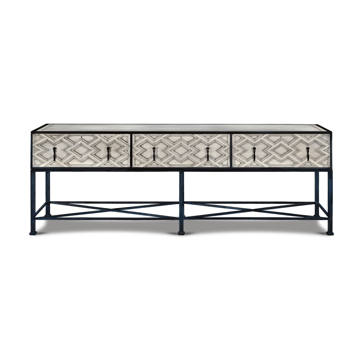Primavera wood, iron base and antiqued iron details.