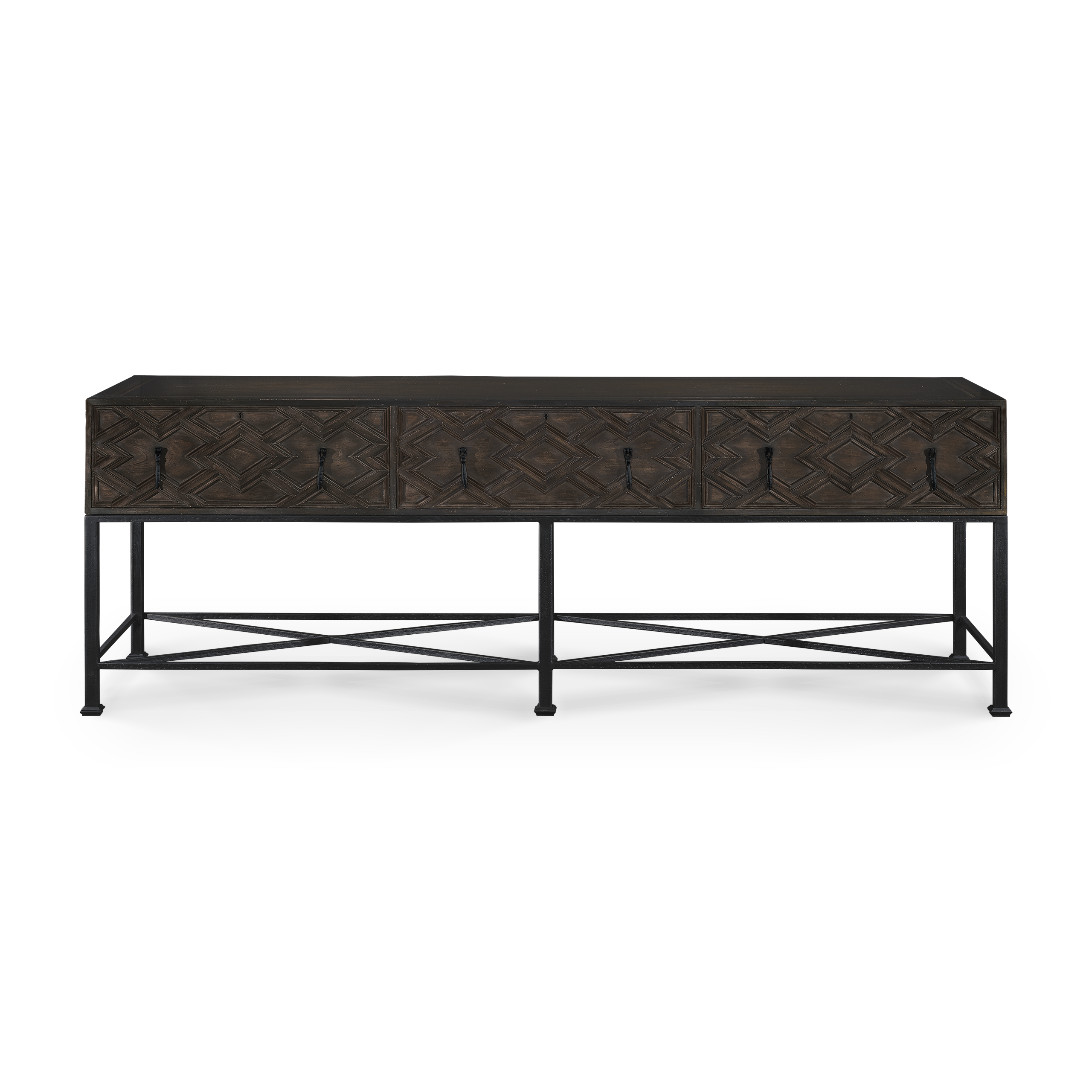 Primavera wood, iron base and antiqued iron details.