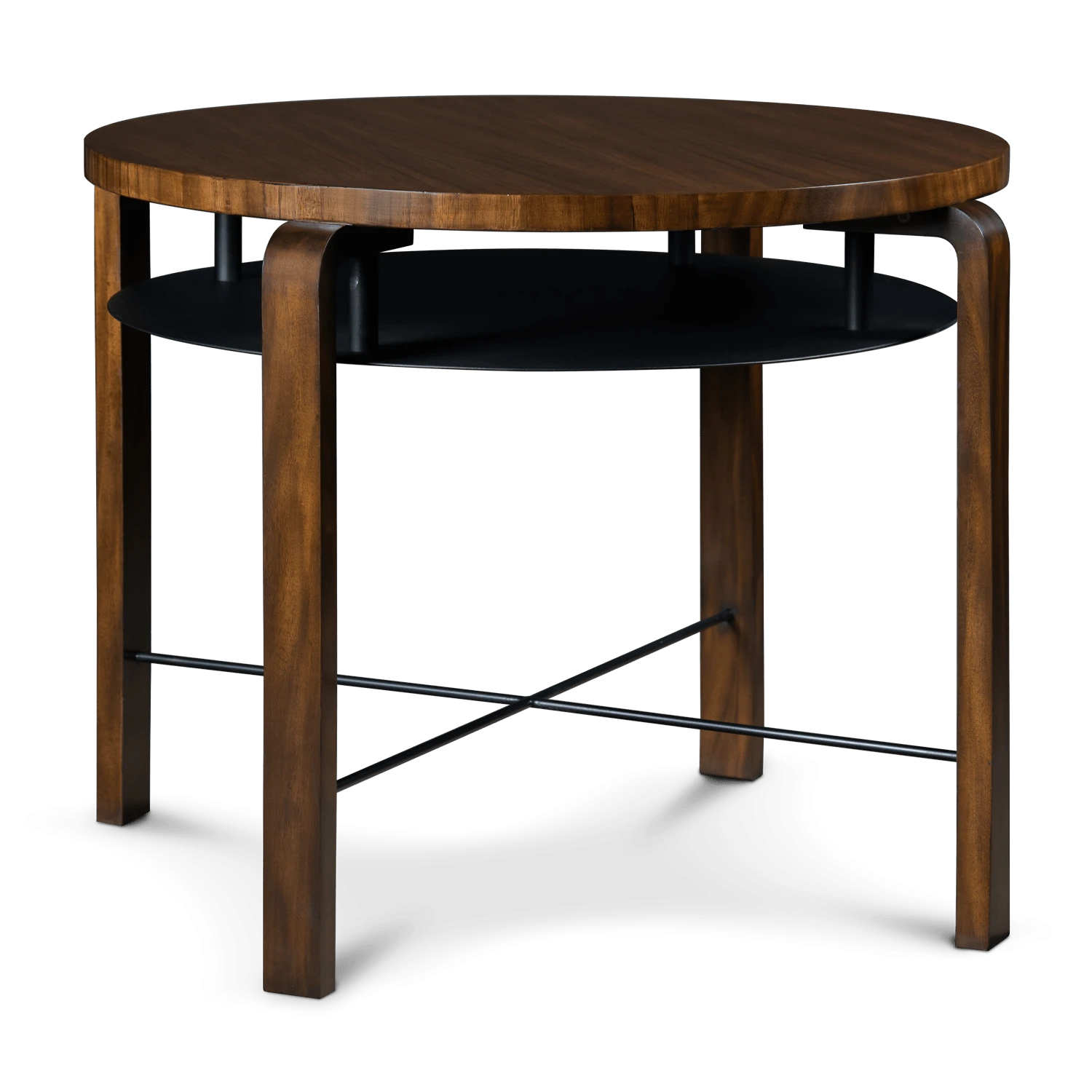 Its primavera wood table top is joined with an iron shelf, huacanastle veneer and pristine iron detailing throughout the piece.