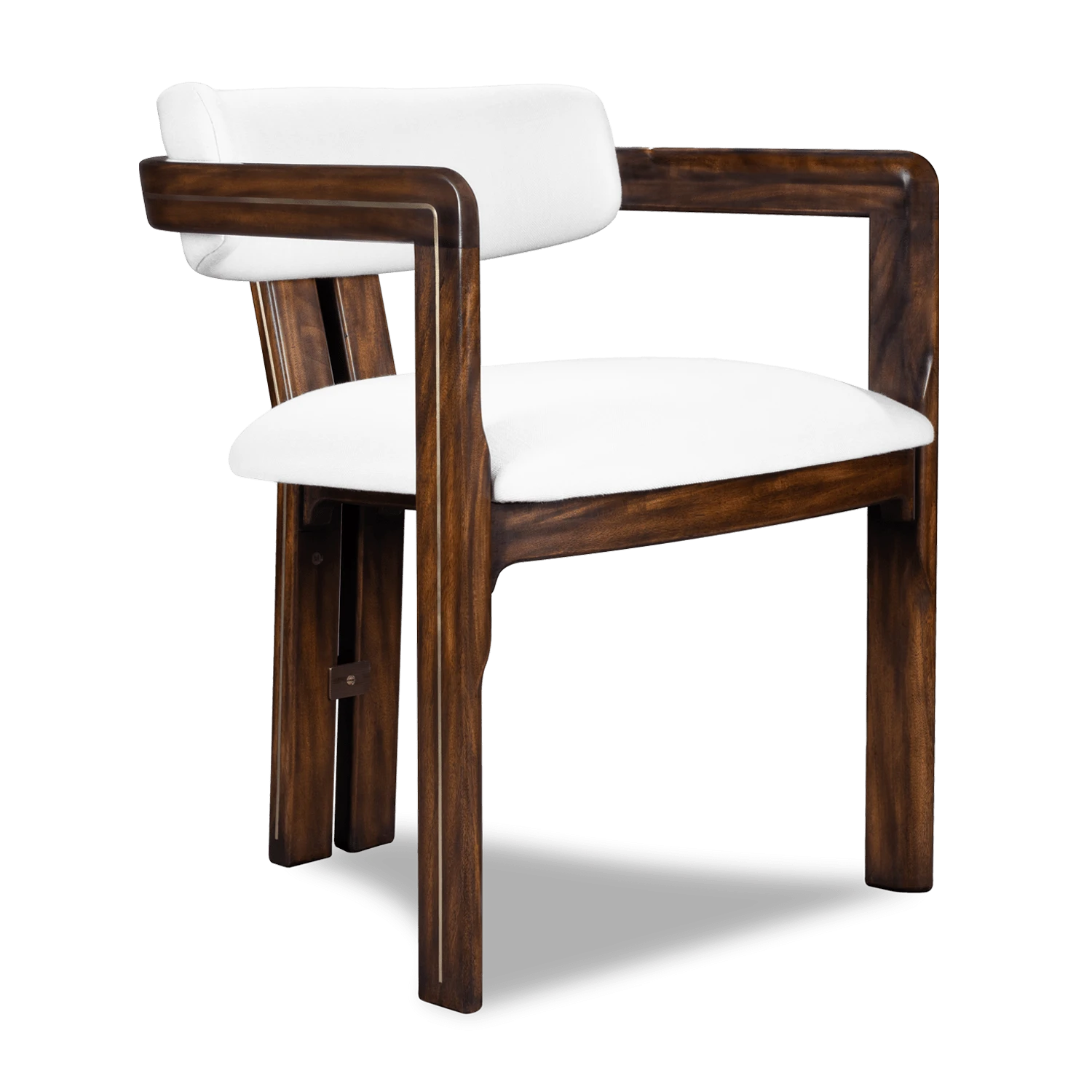 Elegance, engineering and simplicity come together to create the โ€œfrench fiftiesโ€ inspired Lille Chair. The surreal wooden frame is joined at the spine by three brass staples. It is entirely hand processed, intricate and timeless, and the pristine seat is complimented by a comfortable and curved padded back.