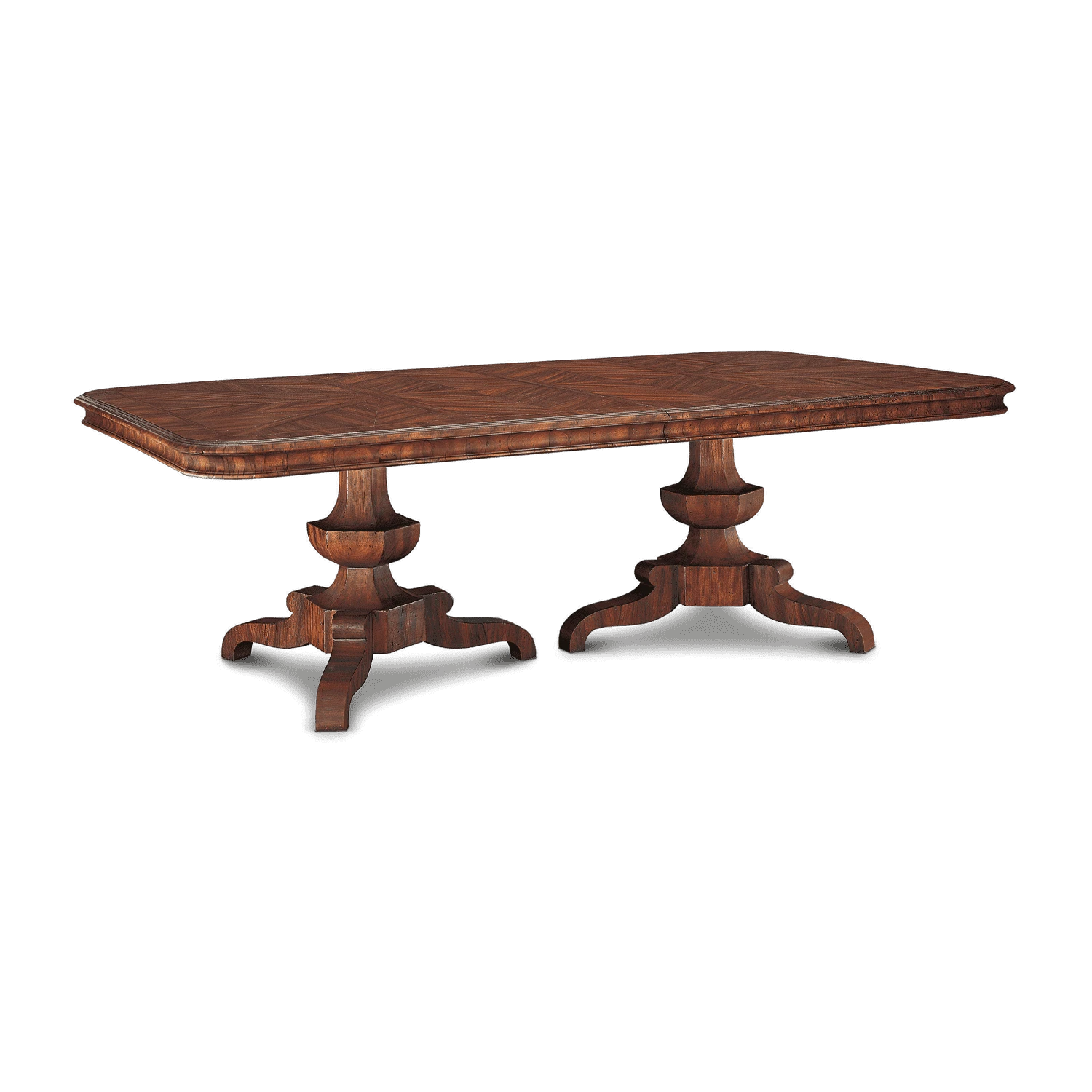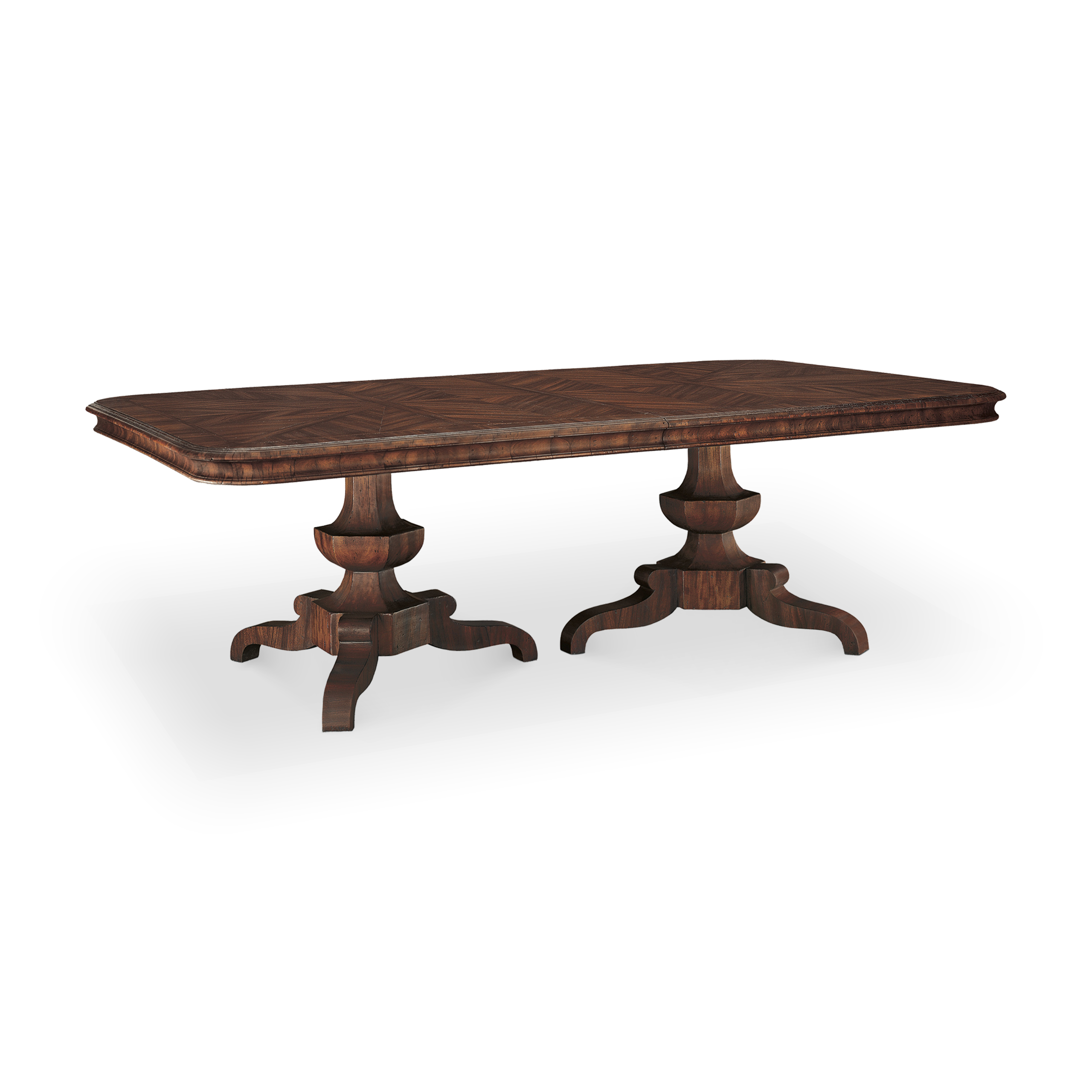 The Palafoxiana rectangular dining table is inspired by XVIIIth Century Mexican furniture, made from guanacastle wood. It has an intricate veneered designed table top with a concave apron made with crossed moldings.