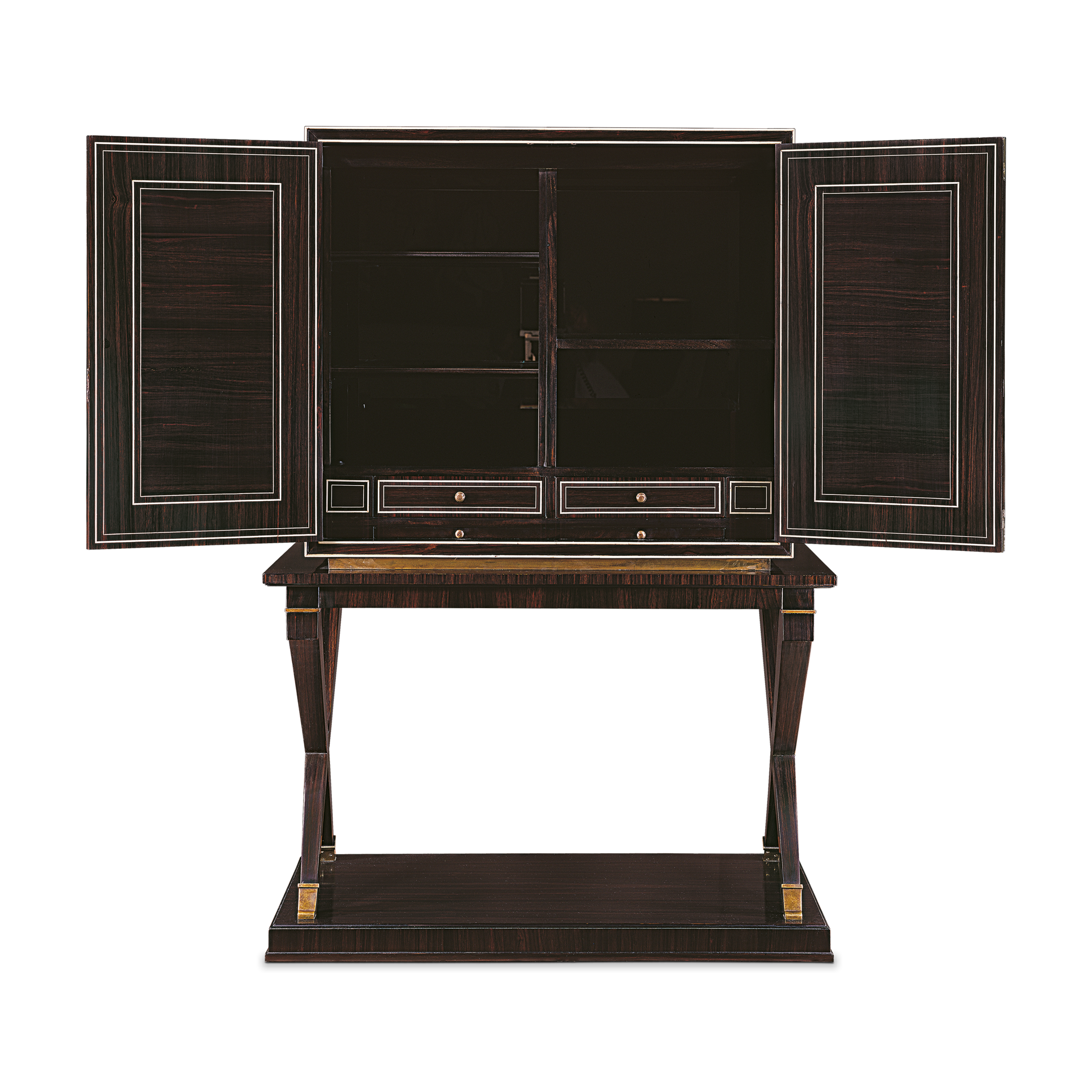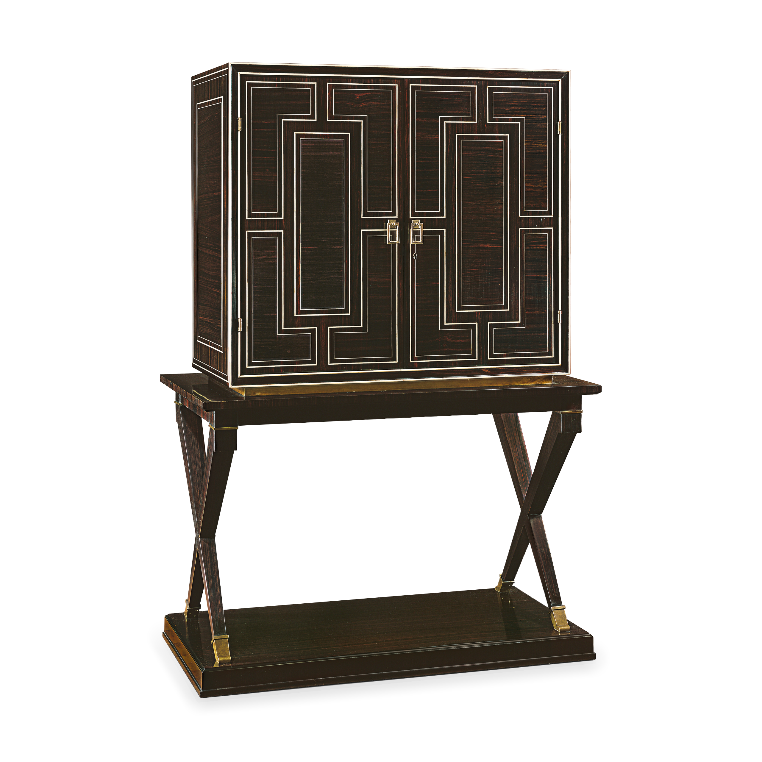 Madera primavera chapa ébano con filetes de hueso y herraje en latón anticado.