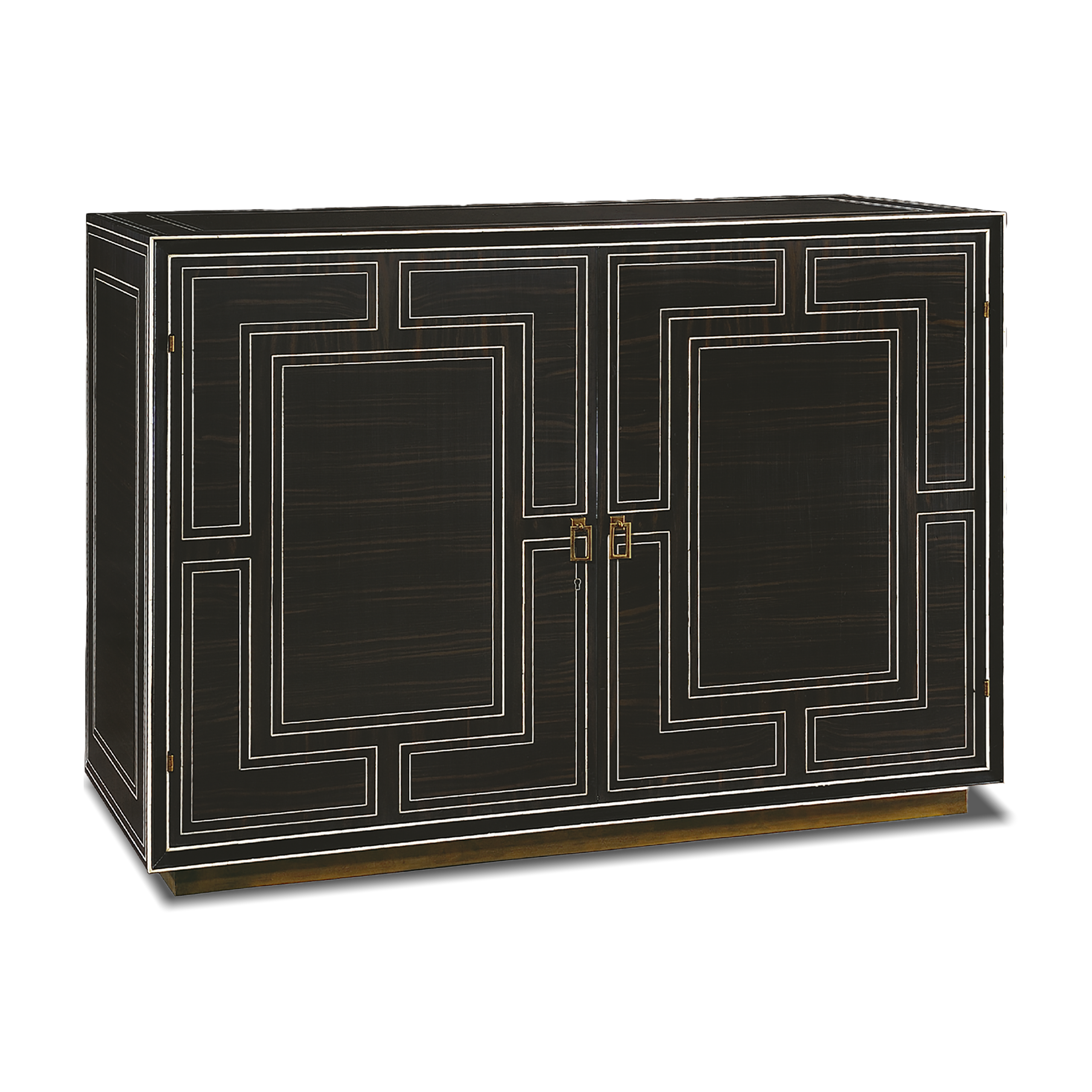 Fabricado en madera primavera. Detalles en chapas de ebano, filetes de hueso y herraje de latรณn anticado.