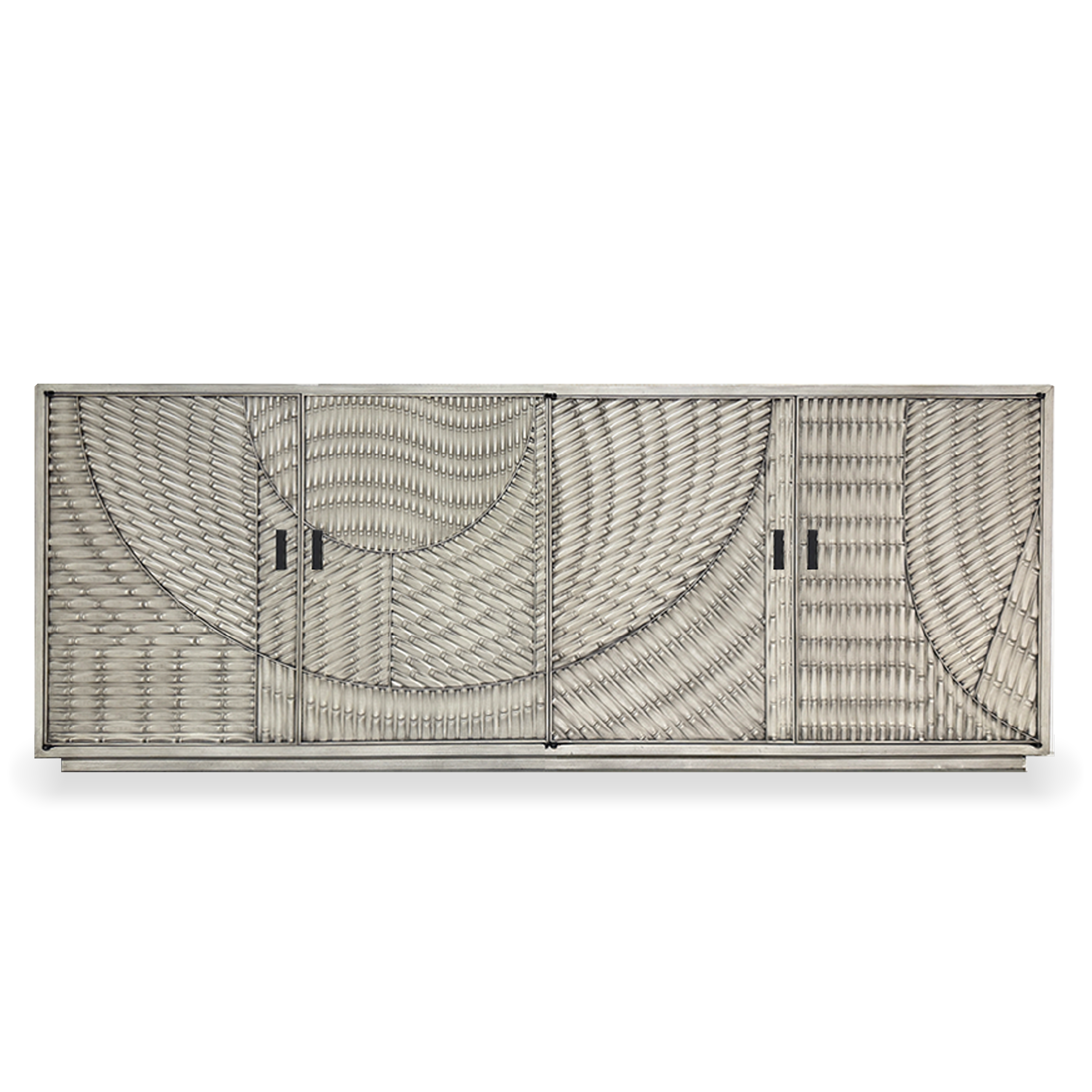 El Buffete Laumont se distingue por la riqueza visual de su superficie y la pureza de sus proporciones. Su frente está compuesto por molduras dispuestas en diferentes direcciones, creando un relieve que sugiere movimiento y profundidad. El herraje de latón introduce un acento cálido y elegante que resalta sobre el acabado oscuro de la madera. Esta pieza, de presencia escultórica y equilibrio formal, refleja la maestría con la que Alfonso Marina transforma la materia en diseño.