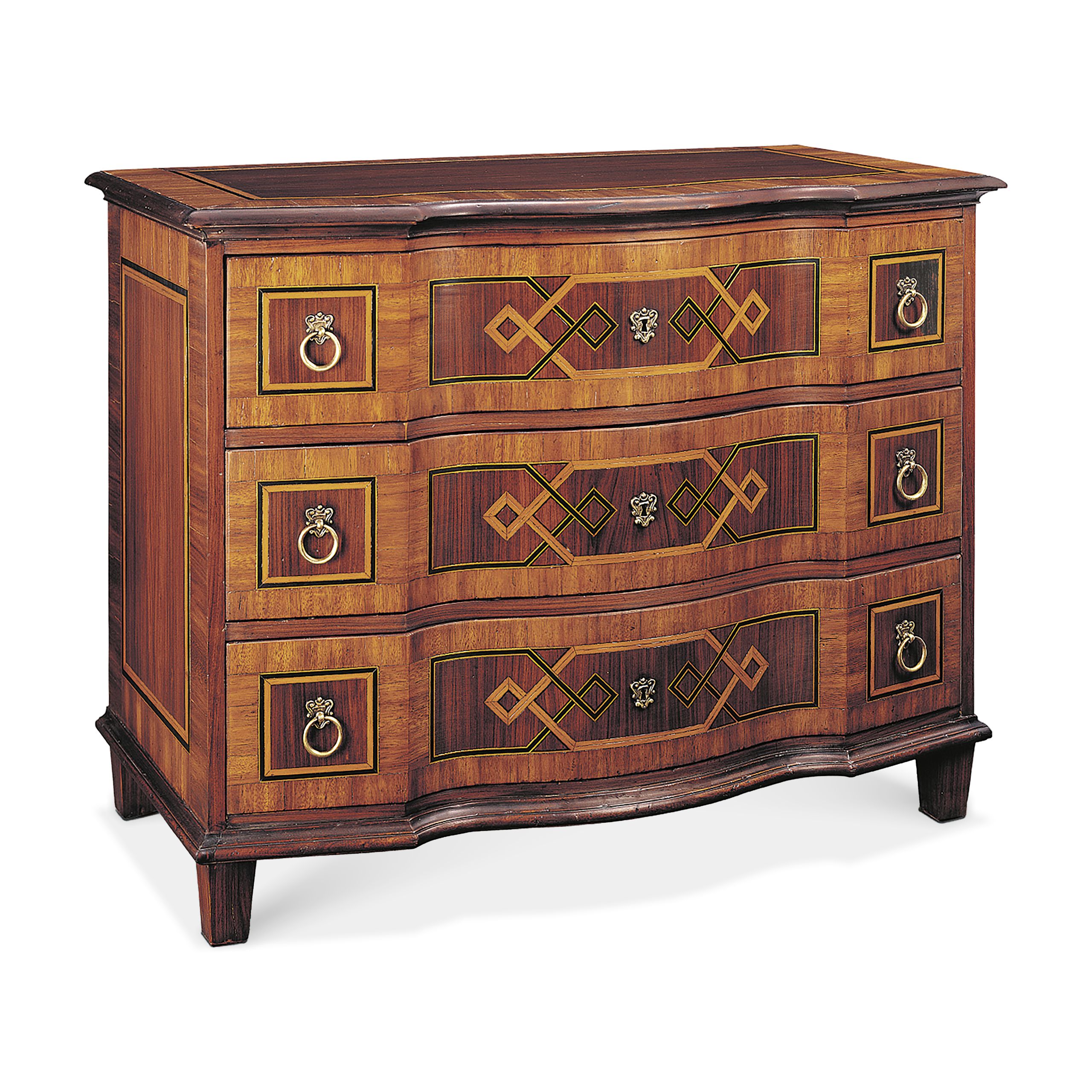 Madera primavera con chapas en maple, ébano, huanacastle,palo de rosa y yew, herraje en latón anticado