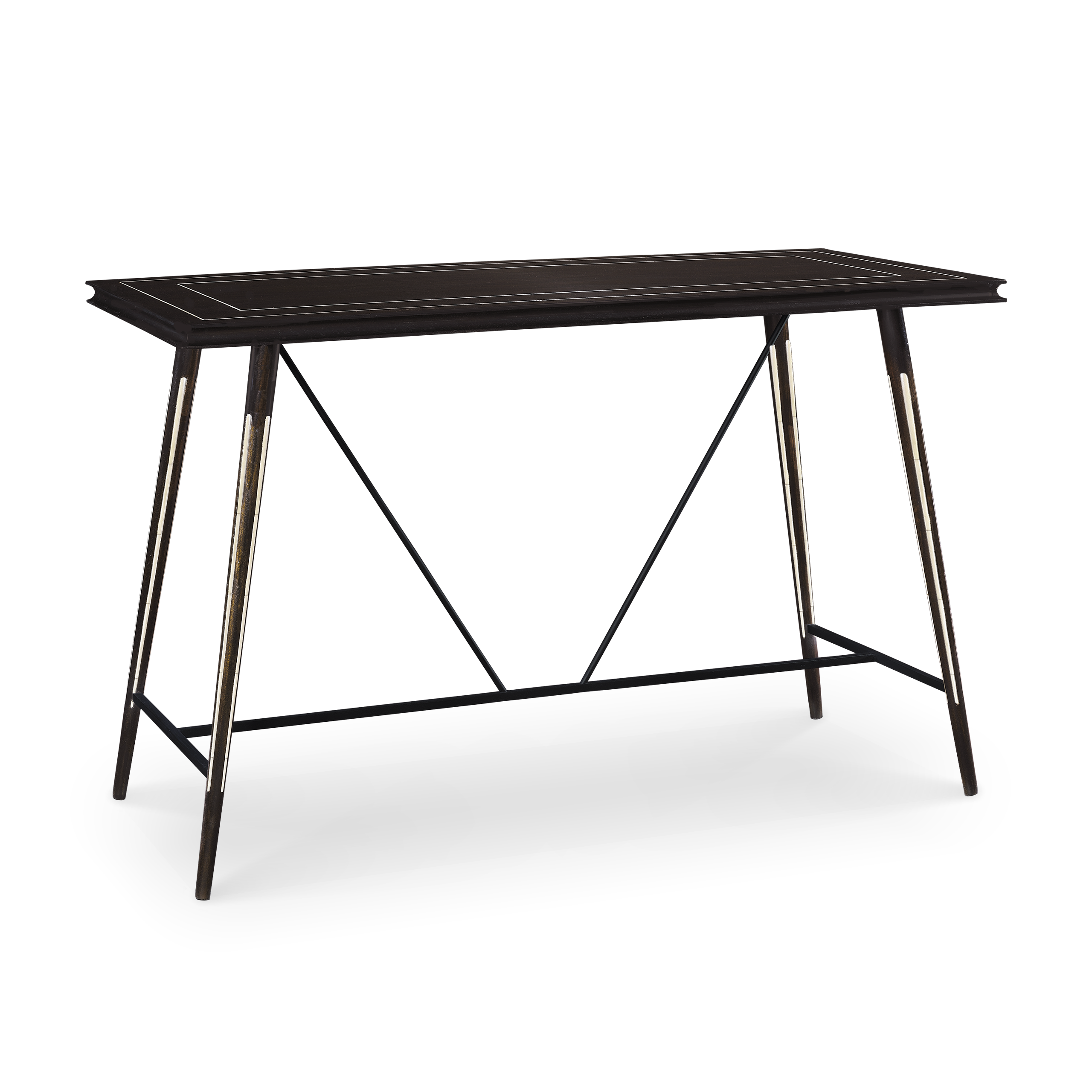 Esta consola está hecha para contrastar con la complejidad de la papelera Zaragoza y está fabricada en un acabado oscuro para resaltar las incrustaciones de hueso.