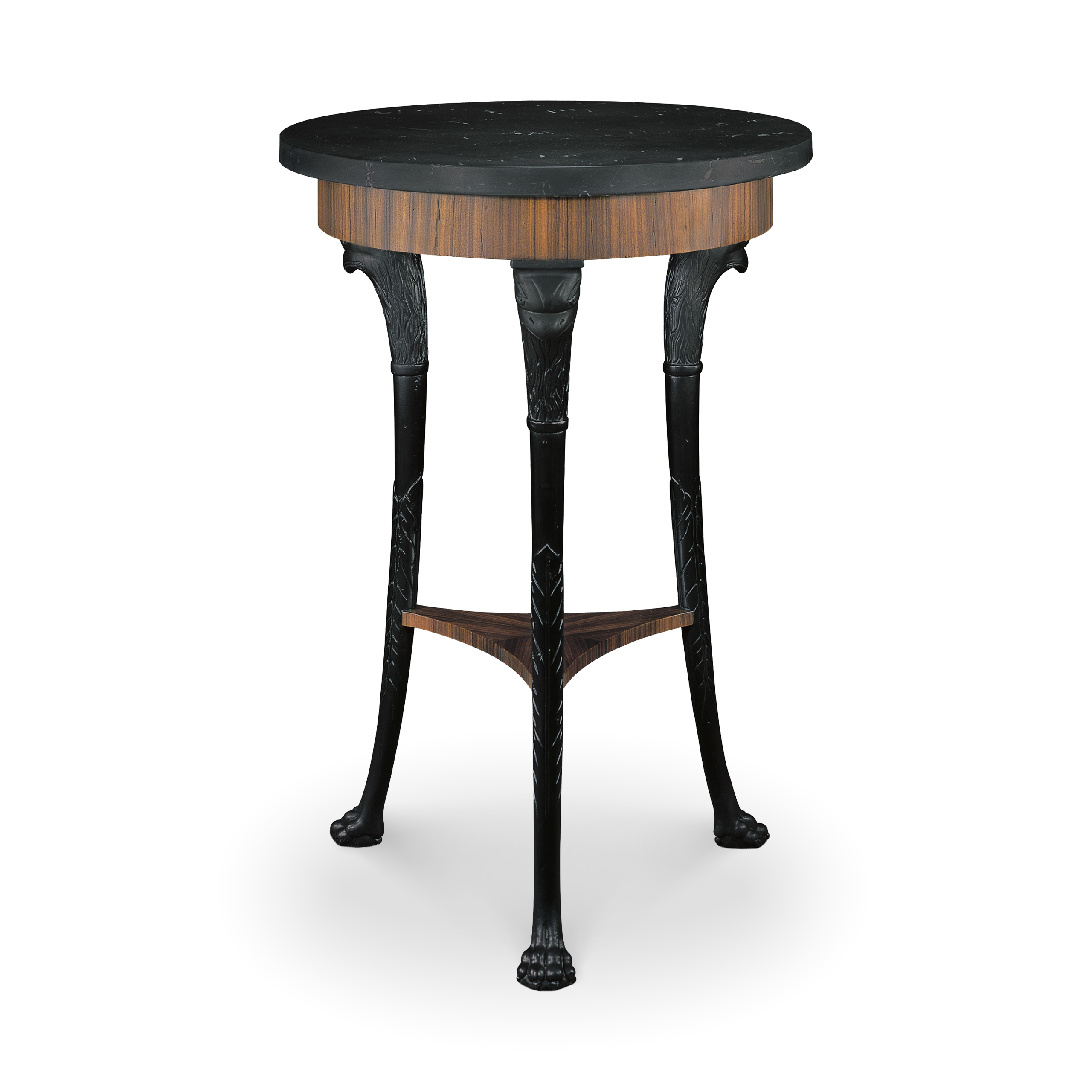 Fabricado en madera primavera. Detalles en chapas palo de rosa, marmol negro monterrey y herraje de laton anticado.