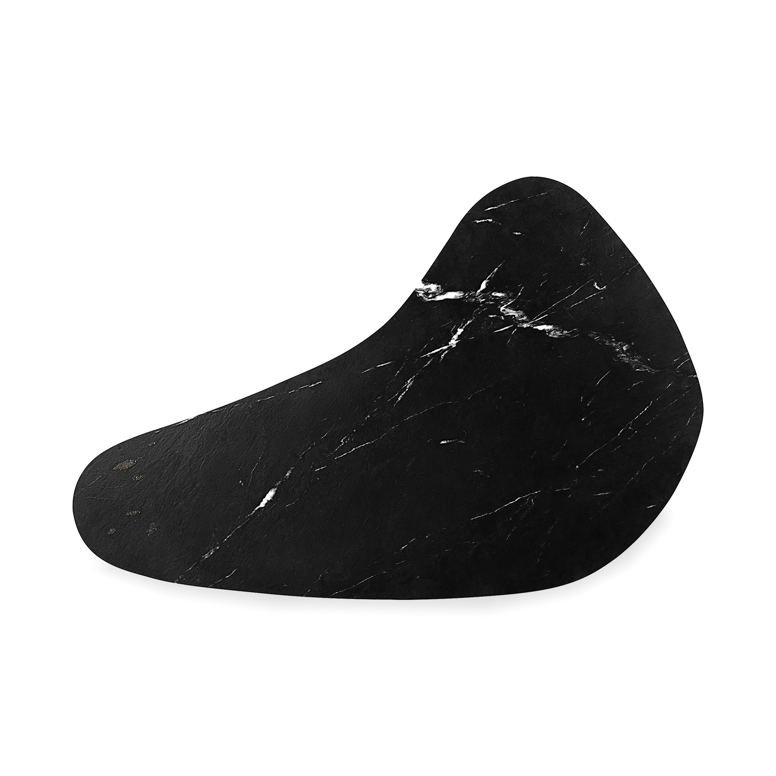 Madera en haya y fierro con cubierta en mรกrmol Ocean Black.