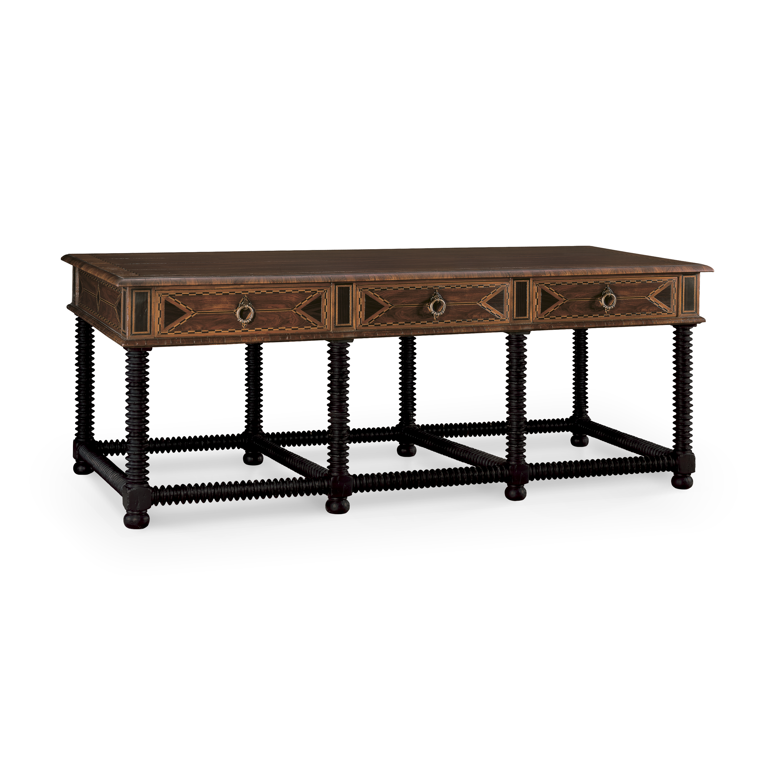 Madera primavera con chapas de ébano, maple, granadillo y koa, herraje en latón anticado.
