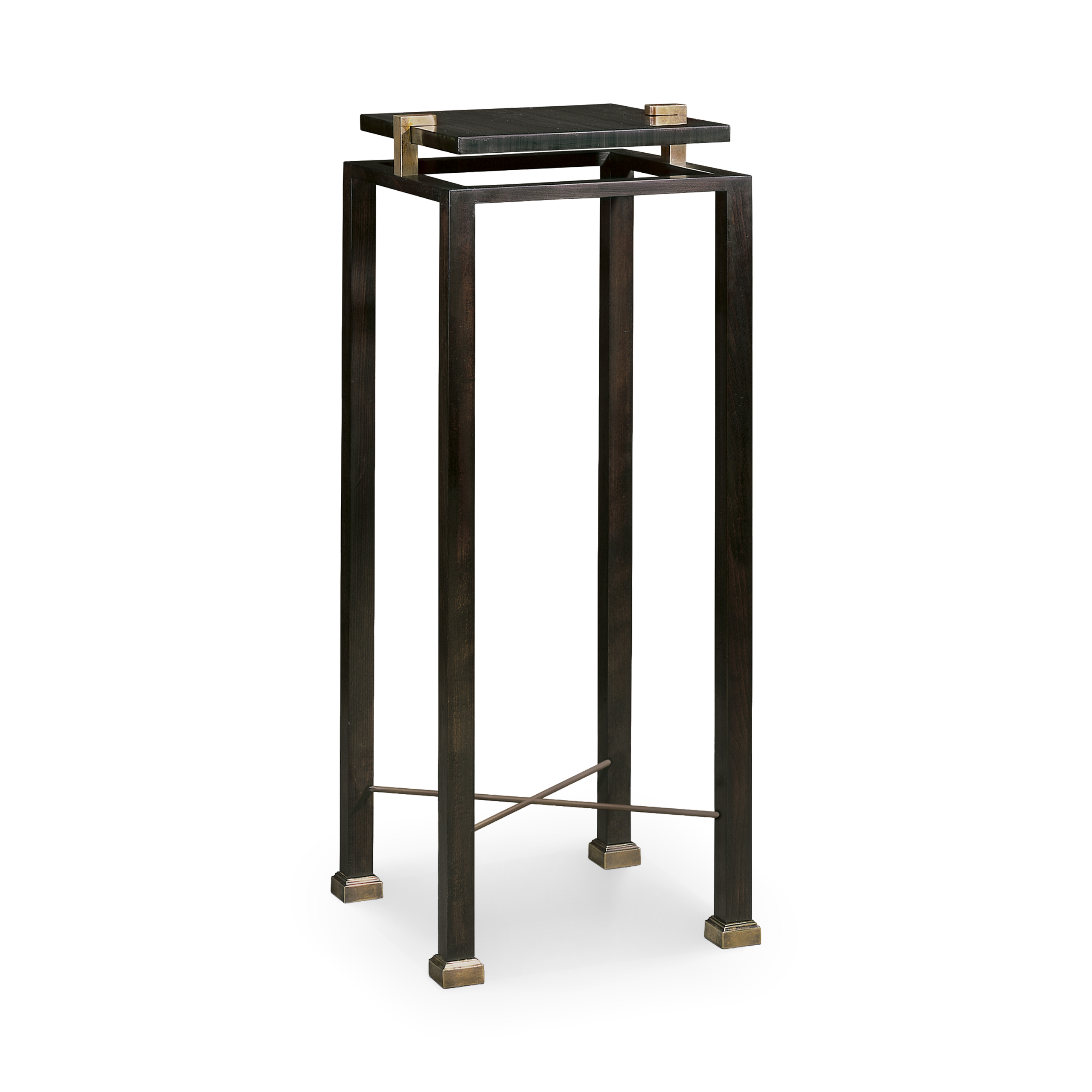 Este soporte contemporáneo se inspira en los años 50 franceses y tiene un acabado ebonizado, latón y cubierta de mármol.