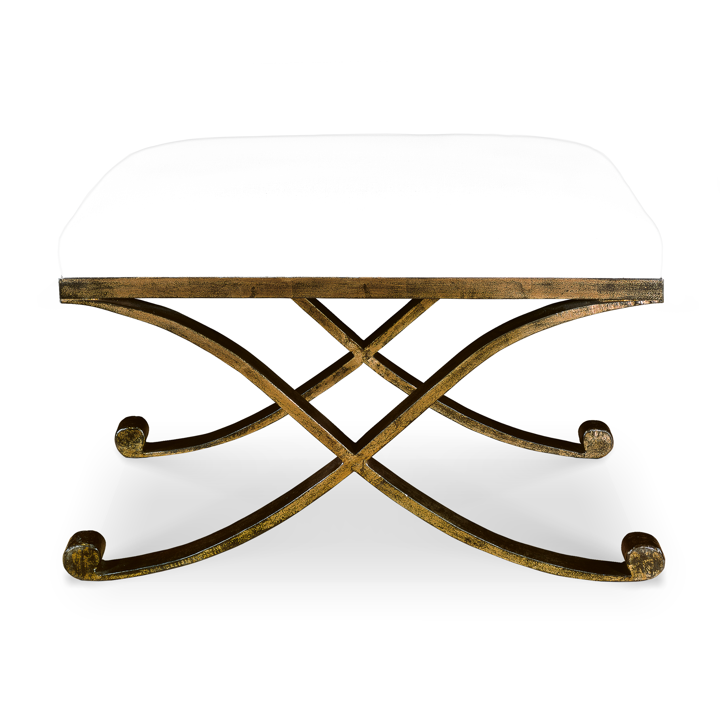 Este Puff representa el diseño francés de los años 50, tiene patas en forma de X que aportan estabilidad, fabricadas en metal con un acabado dorado, irradia la opulencia típica de mediados del siglo pasado. Cuenta con un asiento tapizado en lino, creando un contraste suave y táctil con el dorado brillante. Estos elementos se unen para capturar la esencia de la Francia de los años 50, donde el modernismo de la posguerra se fusionó con la elegancia atemporal, y elementos de diseño como las patas en forma de X se convirtieron en símbolos del espíritu innovador de la época.