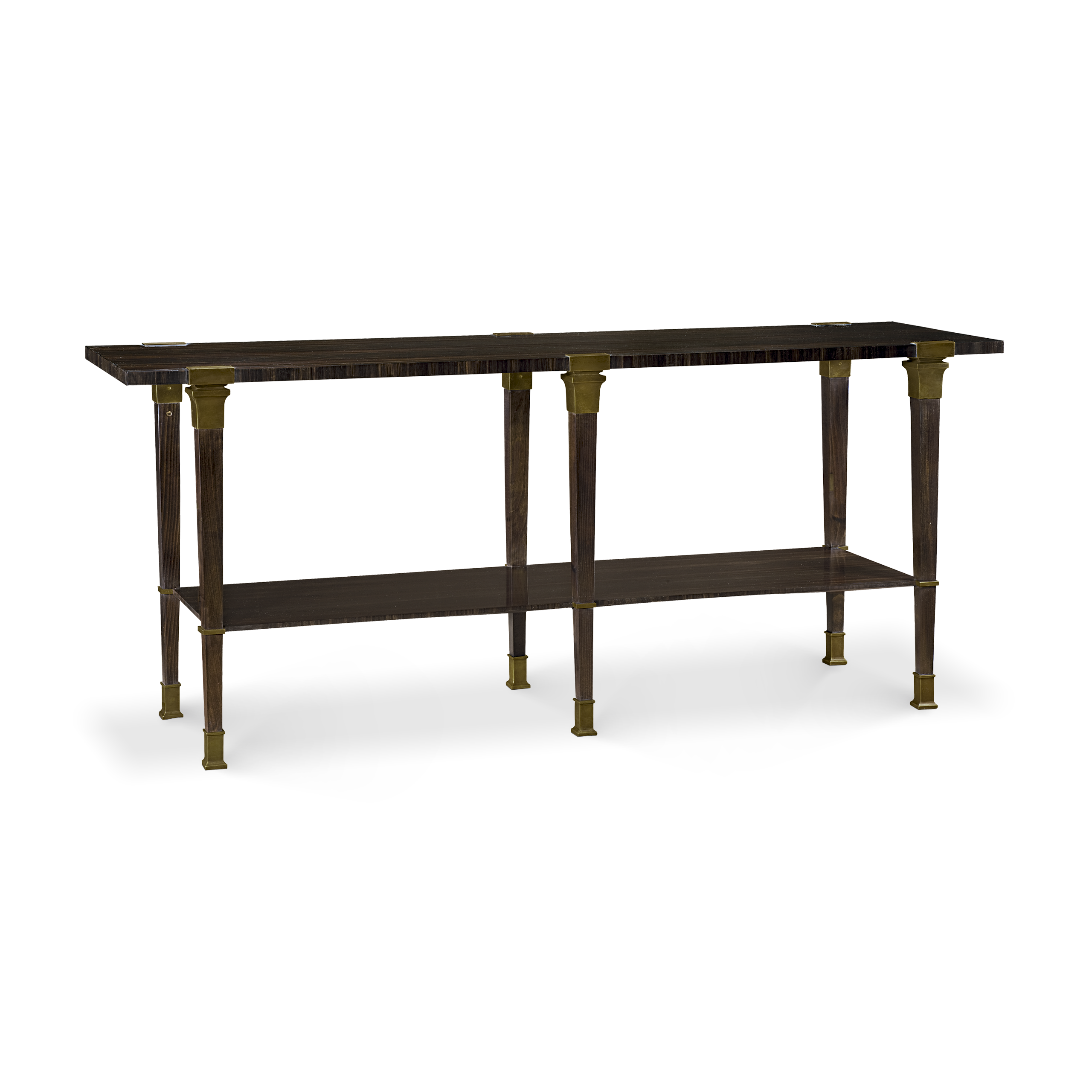 Madera de haya enchapado en รฉbano con herraje en latรณn anticado.