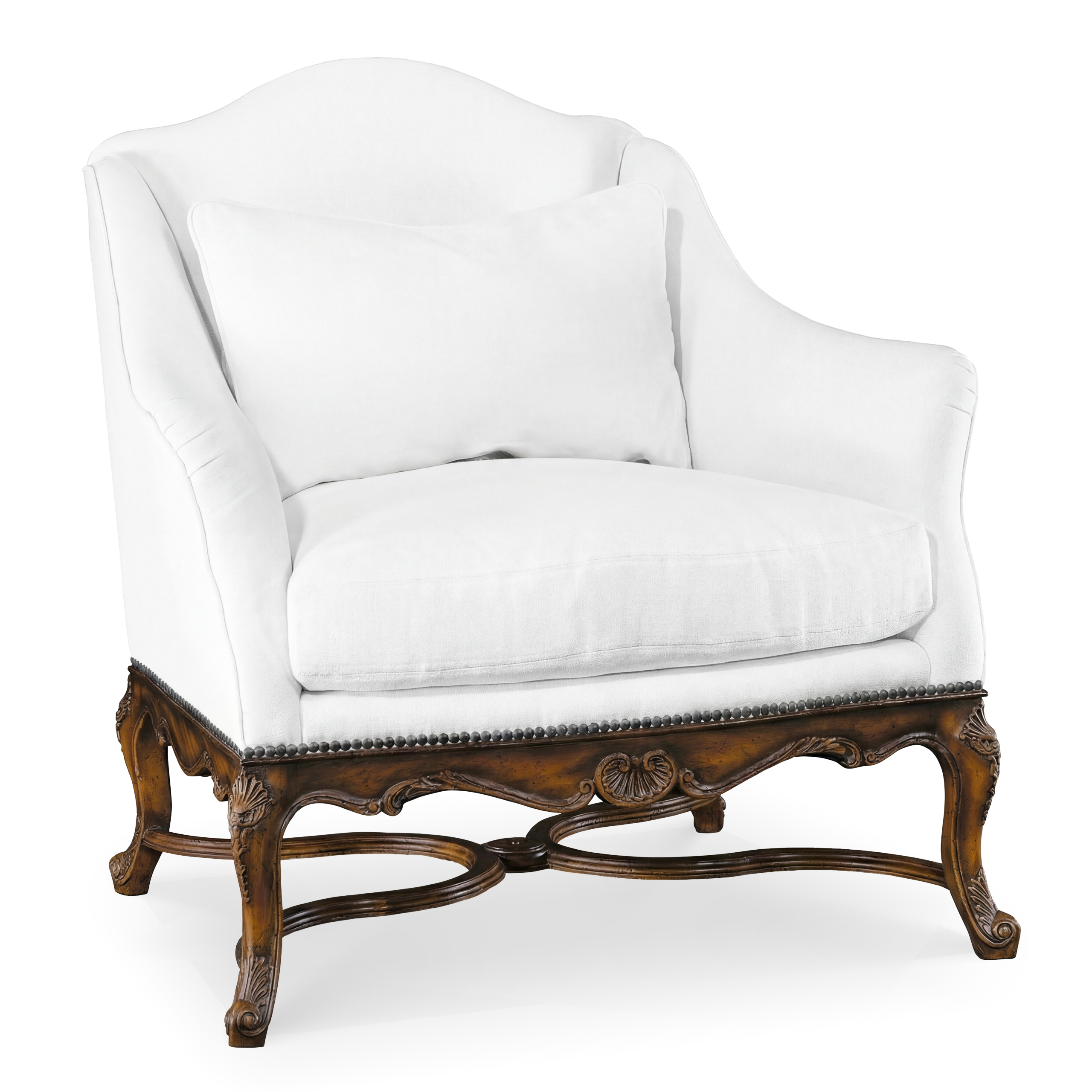 Madera primavera, tapizado en polyespuma y delcron, cojin con pluma, clavillo anticado.